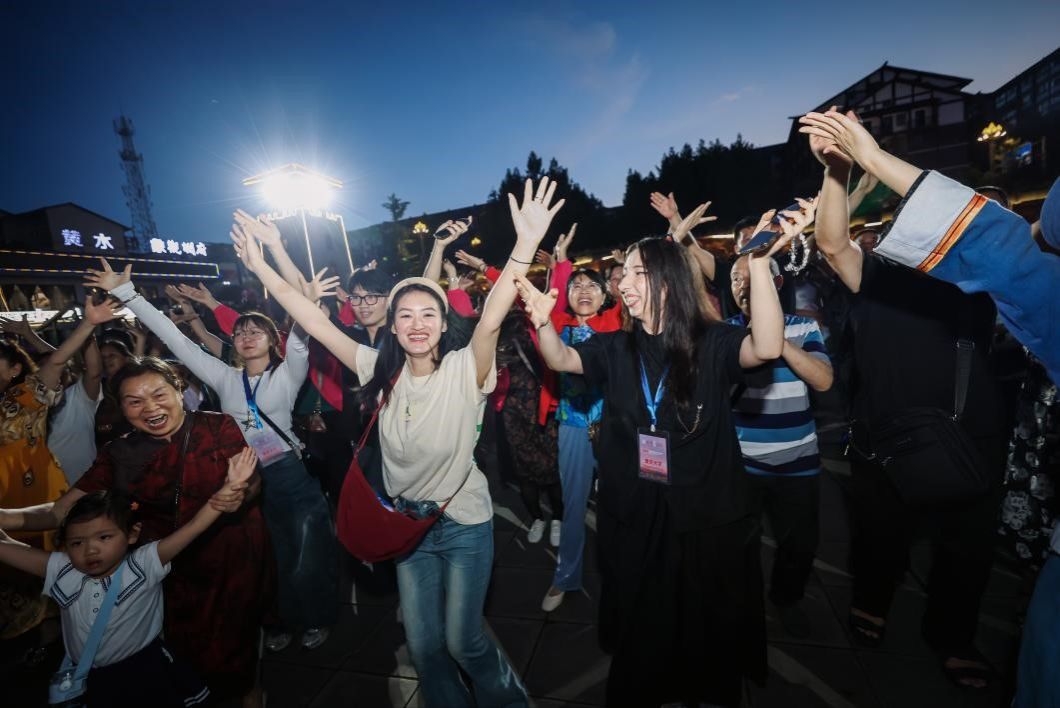 最动人的莫过于黄水度假区的万人摆手舞。当摩洛哥学生跟着节奏摆动双臂,当越南姑娘将这震撼场景发上 TikTok 获赞过千,我忽然明白:文化共鸣从来不需要完美的语言,一个眼神、一次律动便已足够。