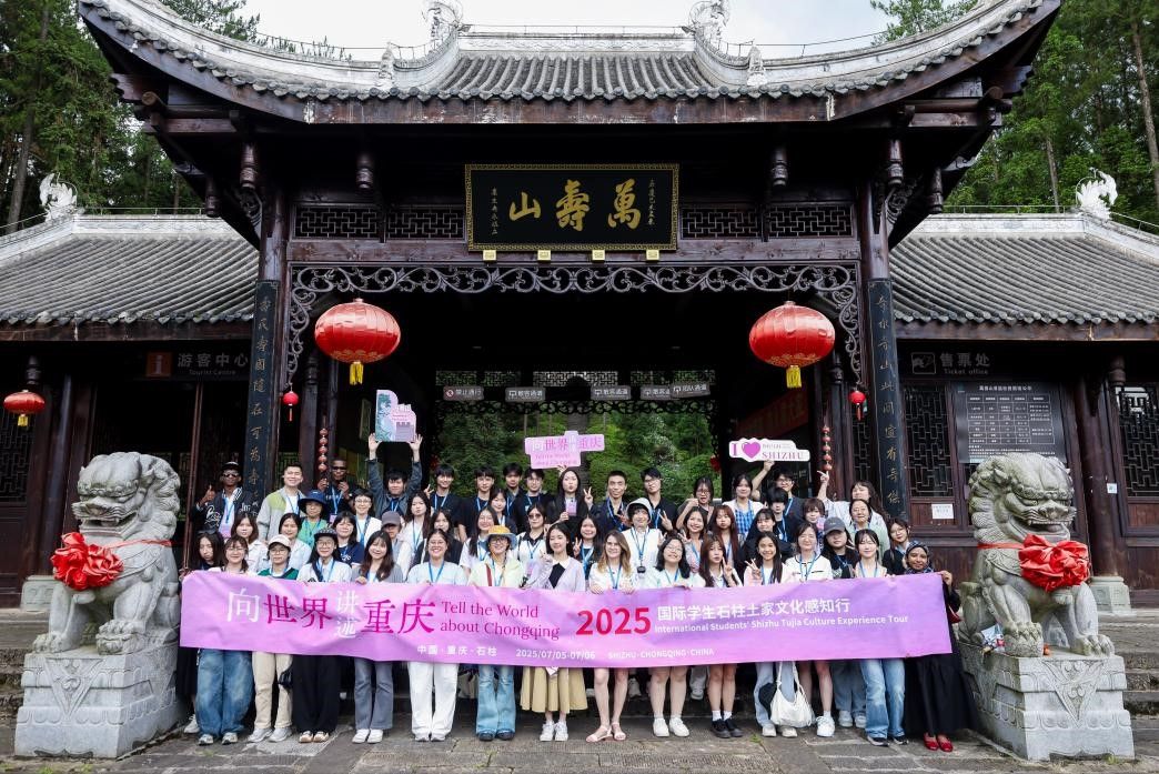 (图:国际学生在石柱万寿山景区合影)