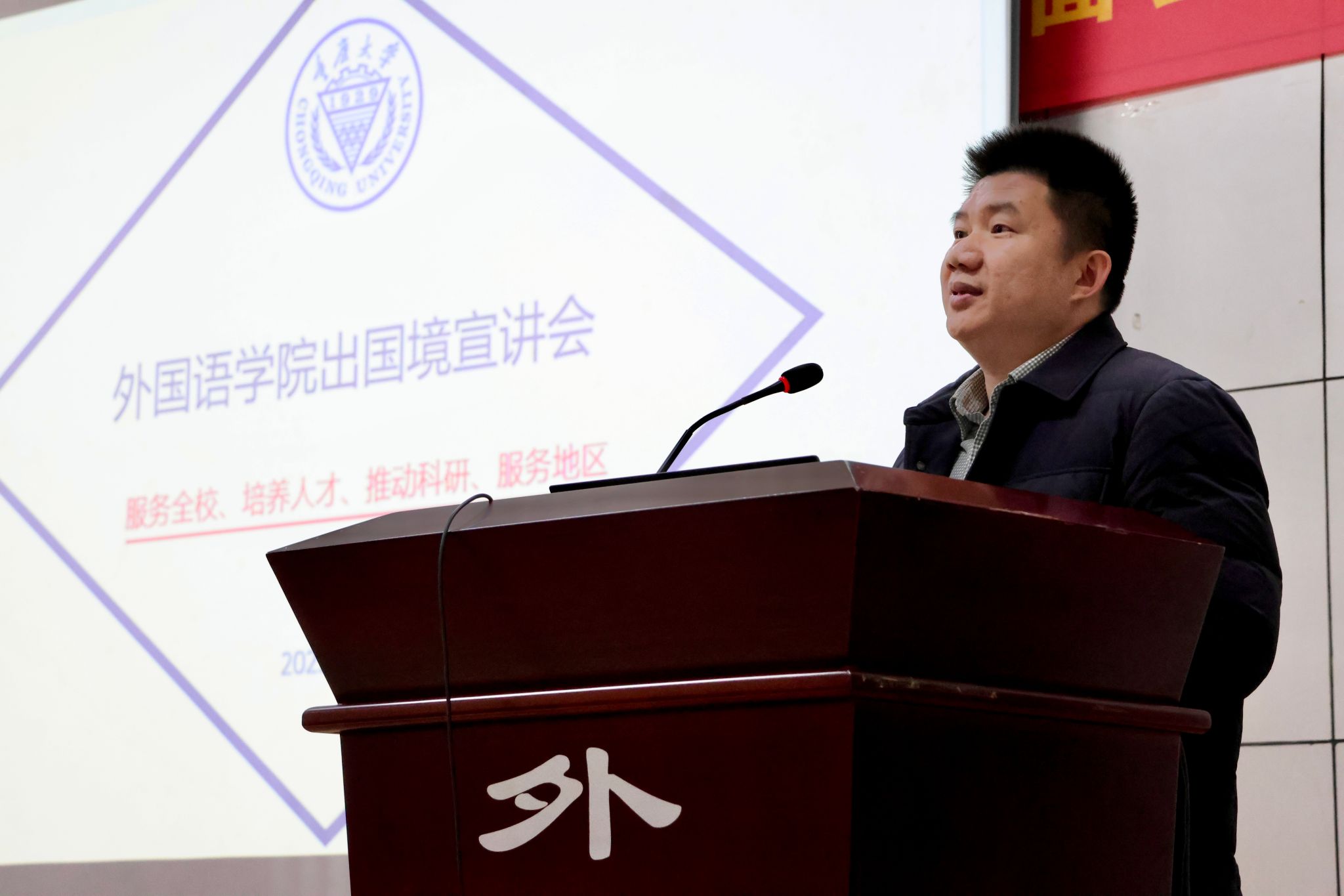 符存副院长讲解了学校和学院在推进学生国际化培养方面的政策与资源支持。他指出,重庆大学已与英国剑桥大学、澳大利亚昆士兰大学等世界知名高校建立了稳定的合作关系,为学生提供多样化的长短期交流项目。学院及学校层面亦设有专项资助,鼓励学生积极参与国际交流,在跨文化环境中提升综合素质与全球胜任力。他勉励同学们把握机遇、勇于探索,通过海外学习经历丰富个人成长路径。
